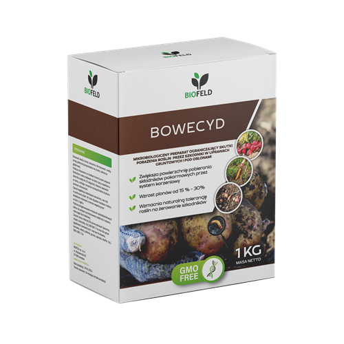 - Odpowiedź: Bowecyd to biologiczny preparat nowej generacji, skuteczny w ograniczaniu szkodników glebowych i nalistnych, np. stonki ziemniaczanej, przędziorków, wciornastków i mszyc. Jest szczególnie zalecany do zaprawiania bulw ziemniaka przed sadzeniem. Ogranicza występowanie w glebie owadów takich jak turkucie, drutowce, rolnice, larwy stonki ziemniaczanej. Polecany jest do upraw zbożowych, warzyw korzeniowych, upraw przemysłowych, roślin ozdobnych, szkółek leśnych, drzew i krzewów owocowych.